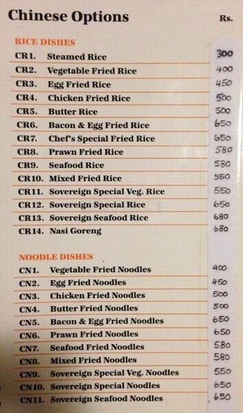 Sovereign German Restaurant Menu Nugegoda Colombo